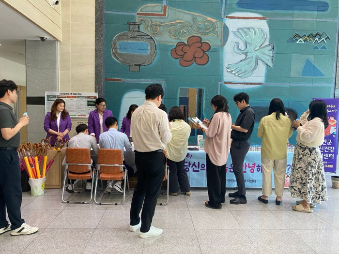 이날 행사에는 민원응대, 신규직원 등의 직무스트레스 검사 및 우울검사를 시행하고 고위험군은 심층면담을 진행했다. 또한 스마트폰을 이용해 스스로 정신건강검진 및 정신건강 관련 유익한 정보를 확인 할 수 있는 ‘터치마인드’ 앱 가입도 독려했다.