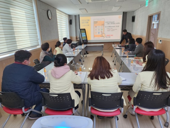 이에 강진군치매안심센터 전문인력들은 지난 19일, 고령층을 위한 스마트 케어 사업을 진행하는 ㈜캐어유 신준영 대표를 강사로 초대해 키오스크 교육을 받았다.