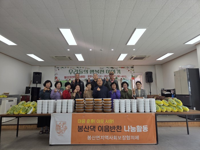 ‘봉산댁 이음반찬’은 올해로 9년째 이어지고 있는 봉산면 특화사업으로, 매년 담양애꽃(대표 박영아)의 400여만 원 후원금으로 운영된다. 지역 내 8개 사회단체가 차례로 참여해 밑반찬을 직접 조리하고 전달하며 안부도 함께 살피고 있다.