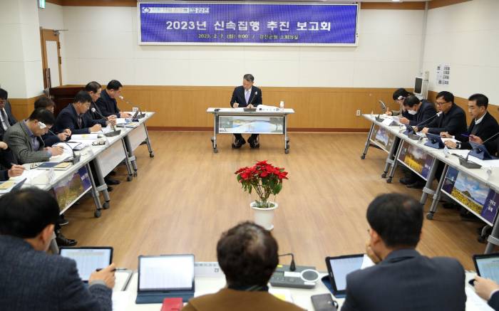 강진군은 예산을 적기에 집행하고 경제 회복에 총력을 기울이기 위해 지난 7일 ‘신속집행 추진 보고회’를 개최했다.
