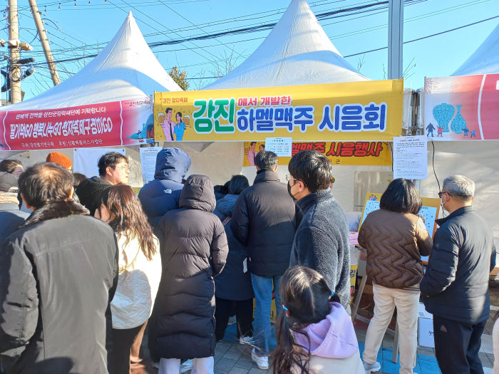 전남 강진군은 지난 2월 23일부터 열린 강진청자축제 현장에서 관광객을 대상으로 군이 자체 개발한 하멜촌 맥주 시음회를 열고 맥주 맛에 대한 소비자의 평가를 받았다.