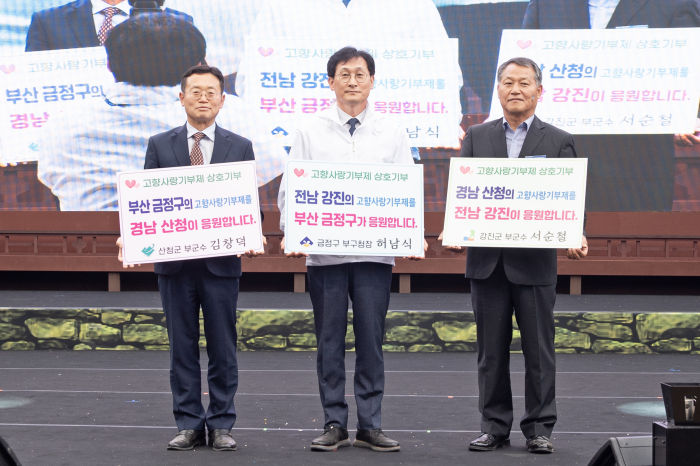 코로나19 이후 4년 만에 방문한 이번 ‘2023 금정산성축제’에서는 특별한 이벤트로 ‘고향사랑기부제 릴레이’를 진행해, 부산 금정구와 자매결연을 맺고 있는 전남 강진군, 경남 산청군의 부자치단체장들이 고향사랑기부금을 상호 기부했다.